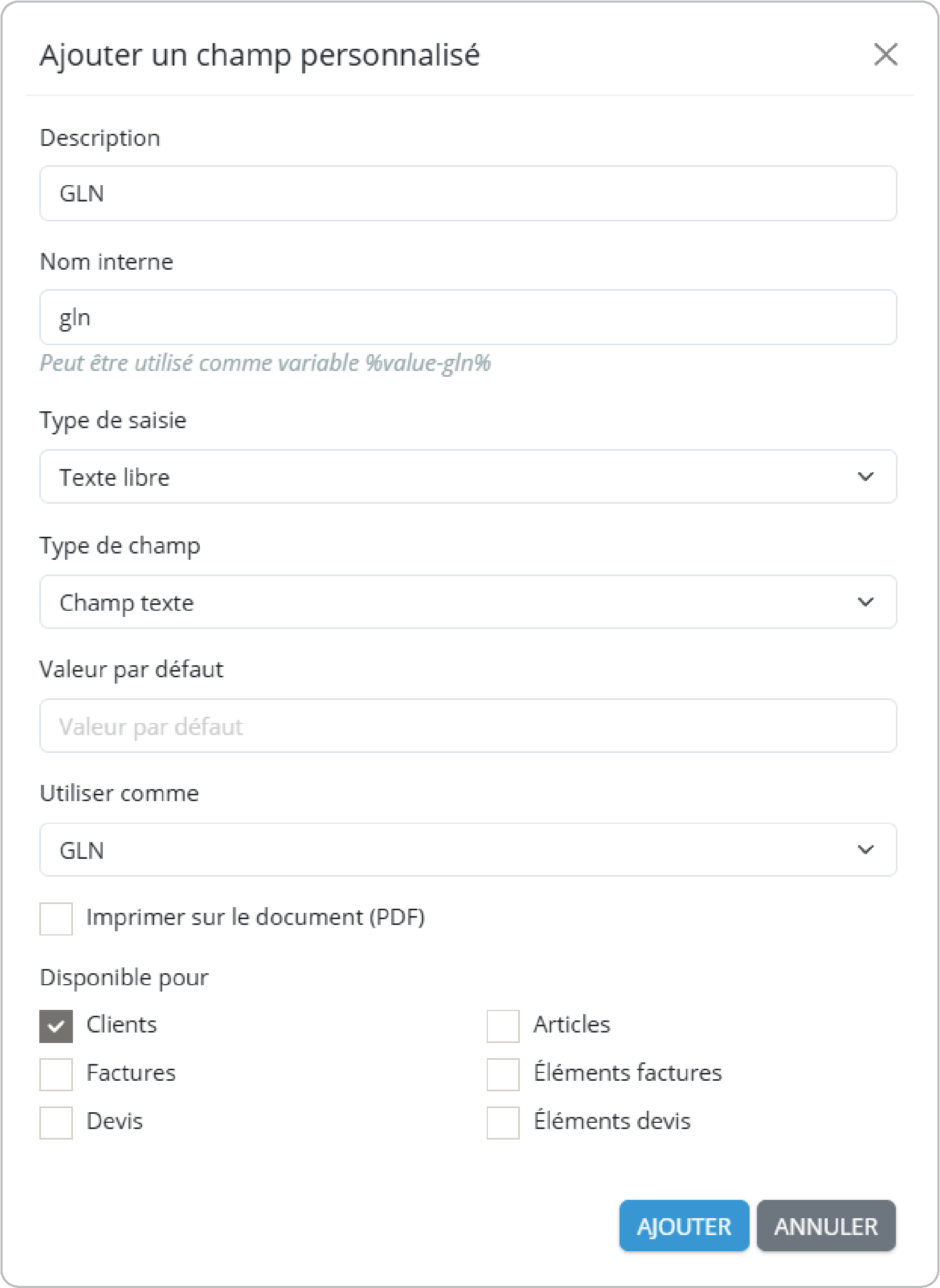 1. Créer un champ supplémentaire pour le numéro GLN