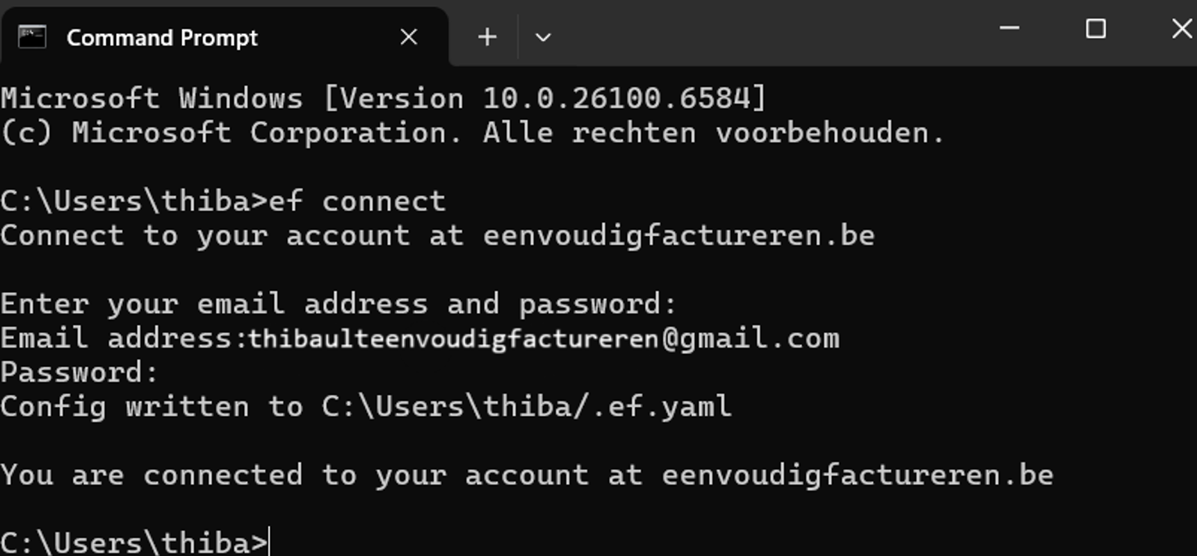 Je bent nu verbonden met je account en kunt CLI-commando’s uitvoeren.