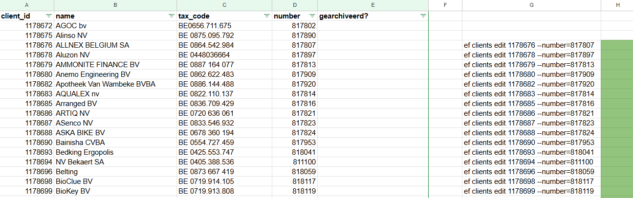 volgende structuur: ef clients edit XXXXXX --number=YYYYYY